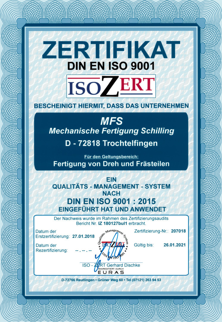 Wir sind nach DIN ISO 9001 : 2015 Zertifizierter.